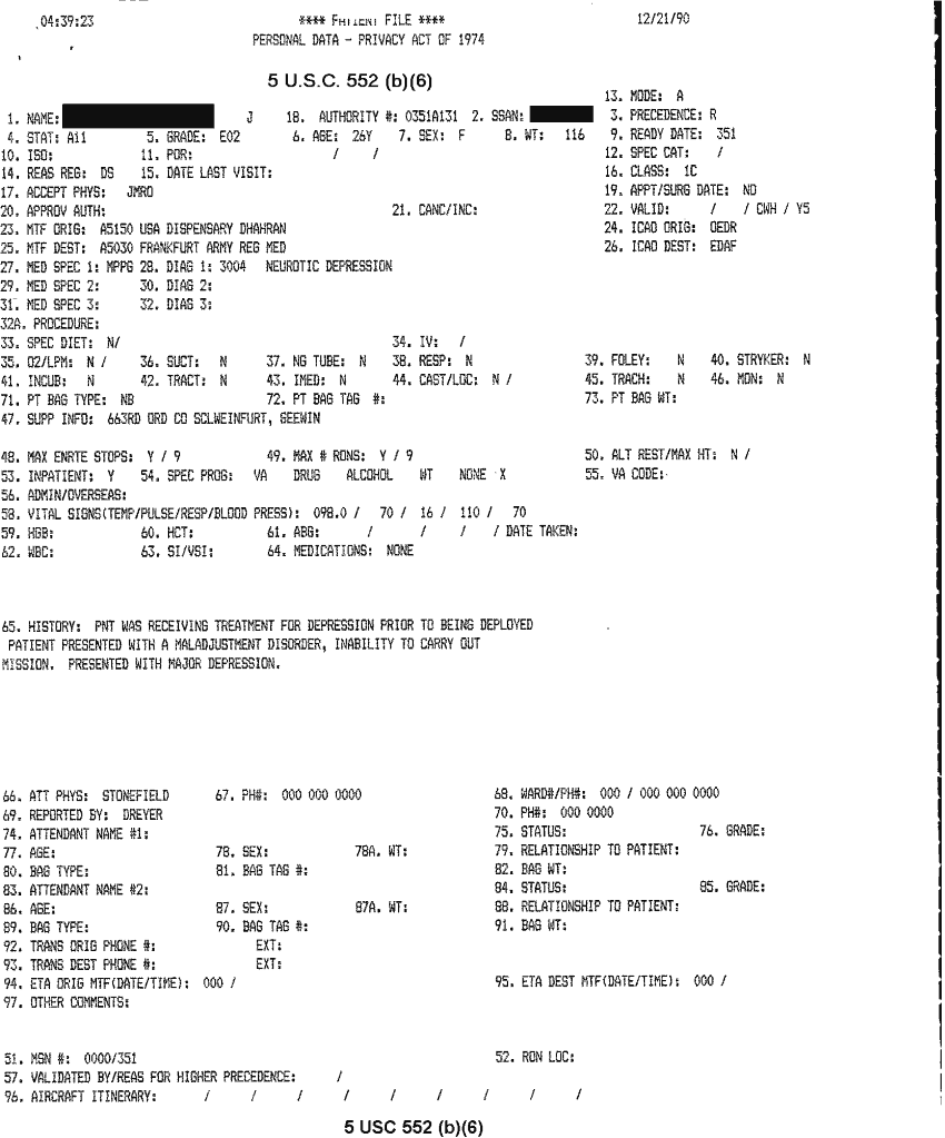 Document 26 f:/Week-32/BX000482/MEDSTAT - SITREPS DEC 90 2 OF 6/patient files 21 dec 90:10019616503519