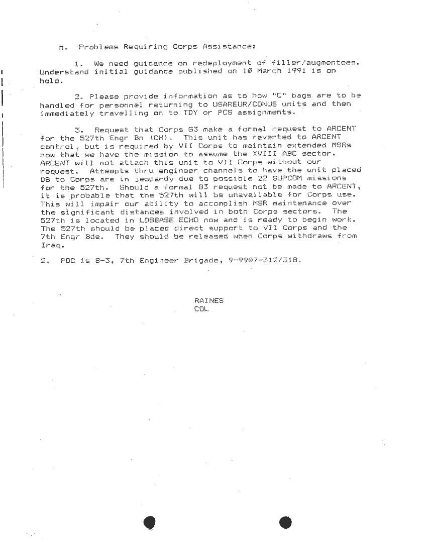 Document 87 f:/Week-24/BX000213/SITUATION REPORTS 7TH ENG BDE 22 DEC 90- 10 APR 91/daily commander sitrep:10019616504540