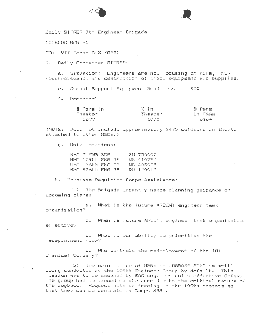 Document 87 f:/Week-24/BX000213/SITUATION REPORTS 7TH ENG BDE 22 DEC 90- 10 APR 91/daily commander sitrep:10019616504540