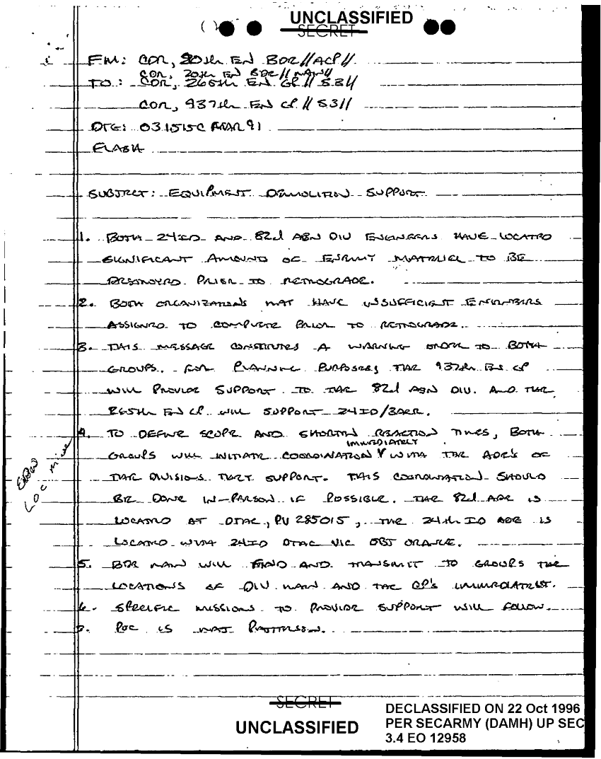 Document 7 f:/Week-18/BX000057/DUTY LOG MAIN CP MESSAGES 20 ENGINEER BDE 3 MAR 91/equipment demolitian support:10259613090733