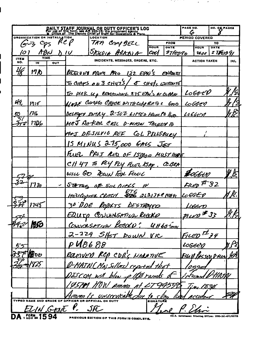 Document 48 f:/Week-22/BX001604/DUTY LOG G3 MAIN 15-27 SEP 90 G3 REAR 21-28 FEB 91/daily staff journal:10259613091549