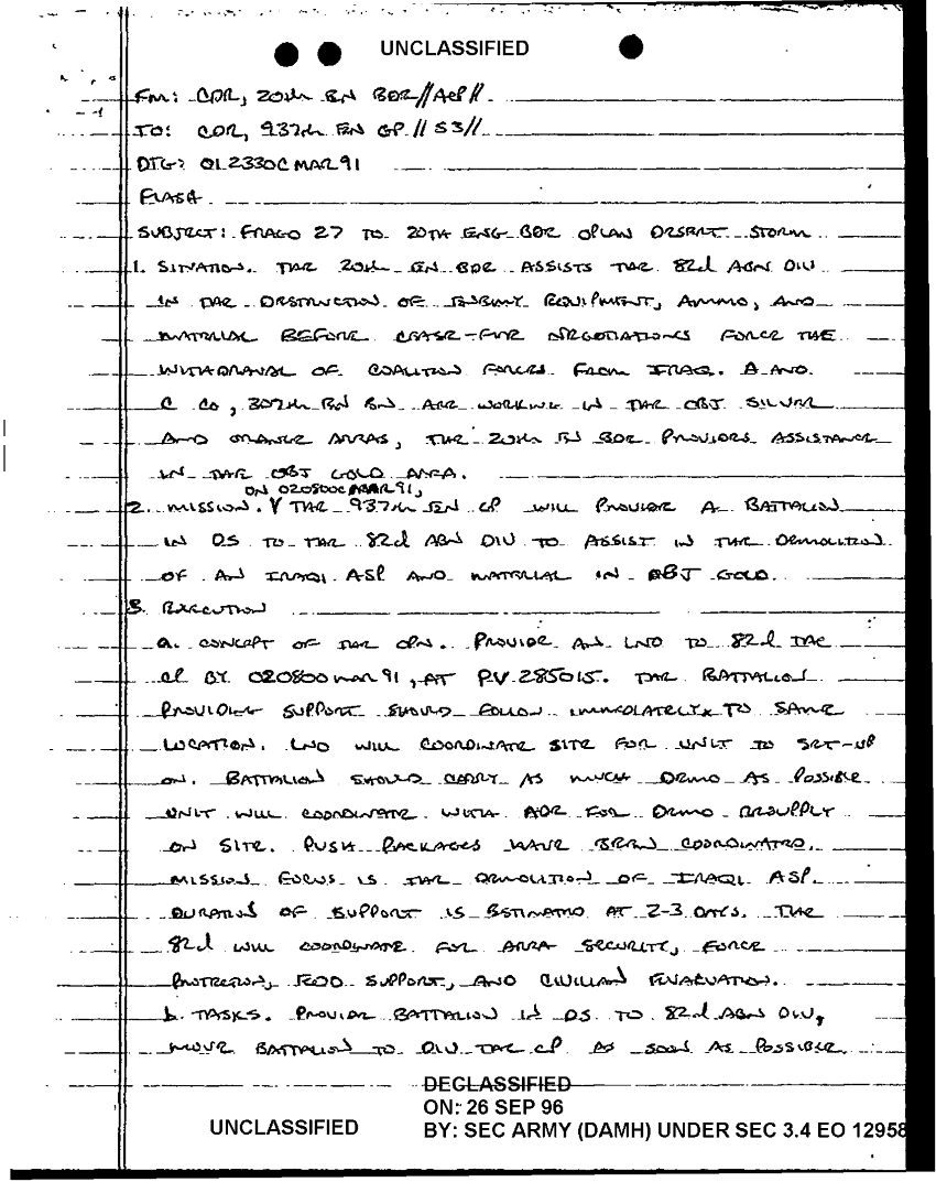 Document 5 f:/Week-18/BX000057/DUTY LOG MAIN CP MESSAGES 20 ENGINEER BDE 1 MAR 91/frago 27 20th eng bde oplan desert storm 1 ma:11049609124512