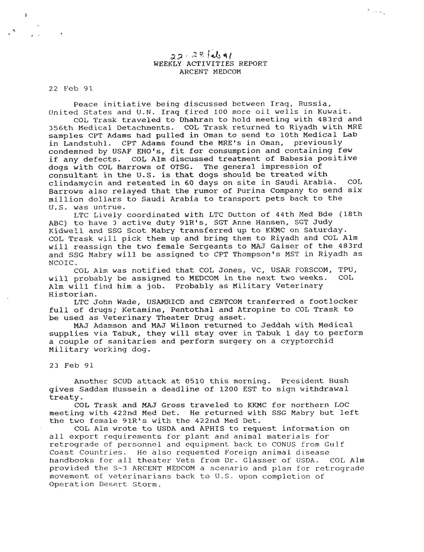 Subject = WEEKLY ACTIVITIES RPT ARCENT MEDCOM