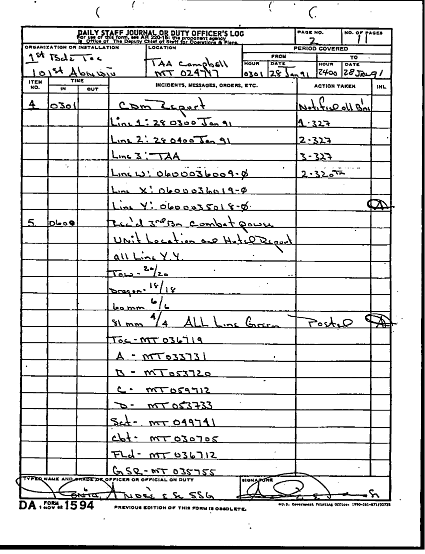 Document 11 f:/Week-22/BX001605/101ST ABN DIV AASLT DUTY LOG JAN 91-F/daily staff journal:110496091422126