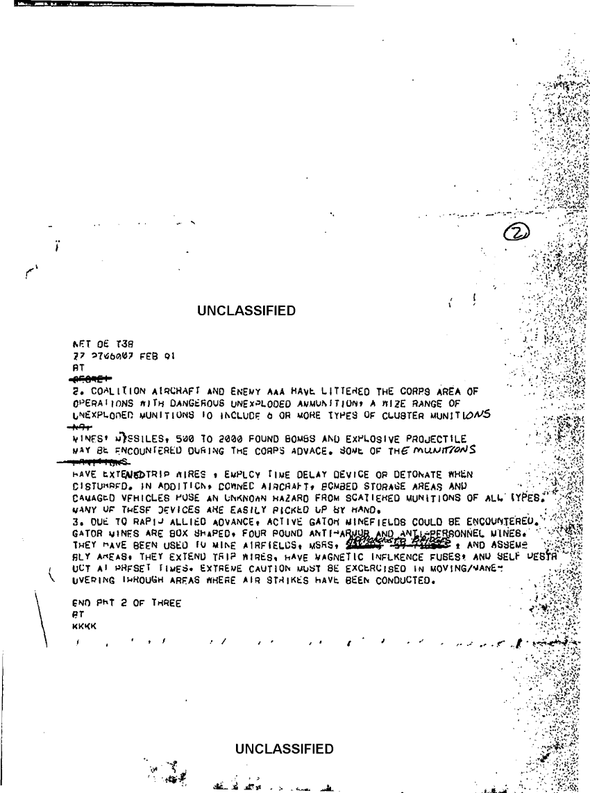 Document 3 f:/Week-10/BX000020/DUTY LOG G3 REAR INCOMING MESSAGES 20 FEB - 14 MAR 91/unexploded munitions:11049609131546