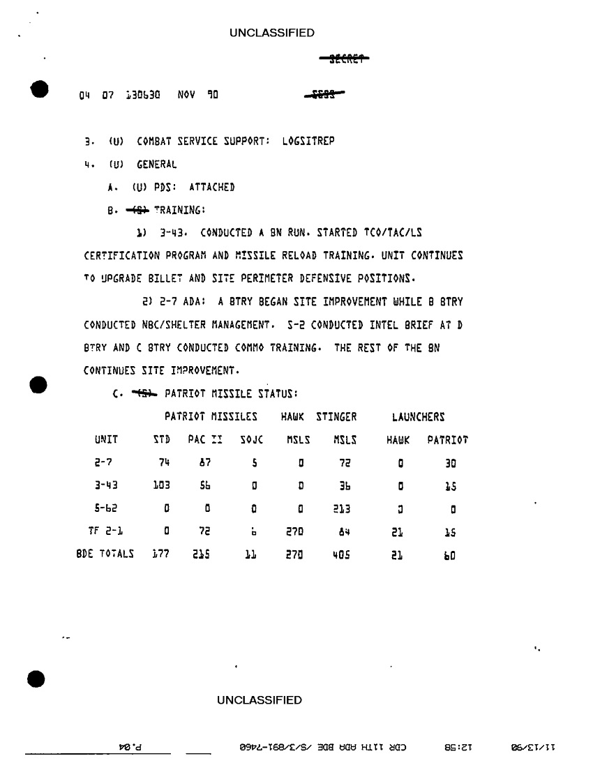 Folder Title = COMMAND REPORTS SITREPS 11TH ADA BDE 6 OCT 90-23 NOV 90