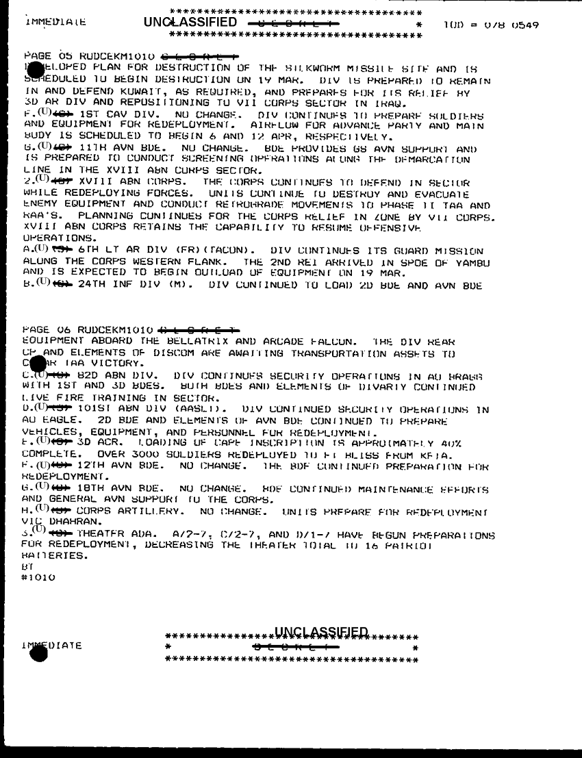 Document 4 f:/Week-30/BX000443/COMMAND REPORTS ARCENT SITREPS 1-22 MAR 91/status of iraqui forces:11089615142622