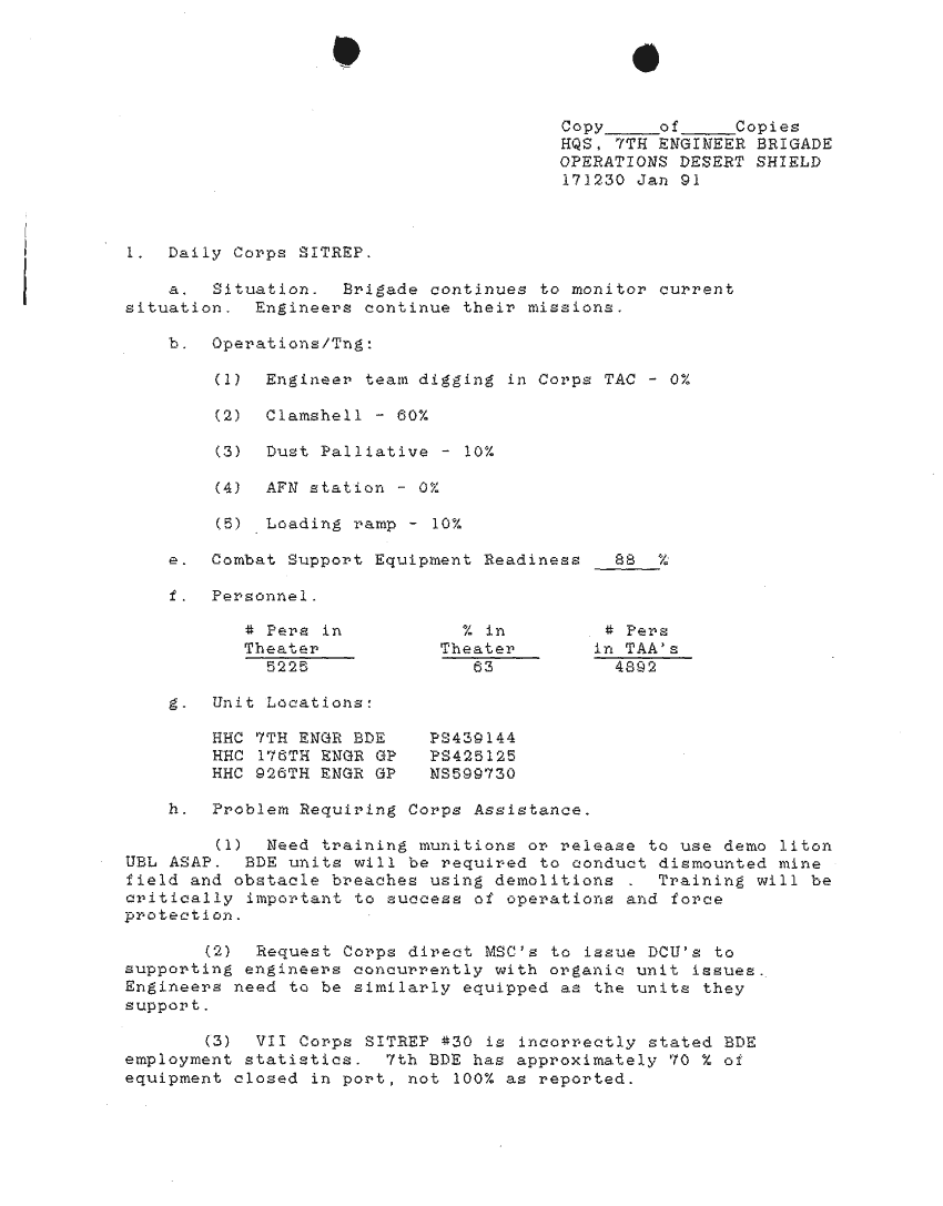 Document 41 f:/Week-24/BX000213/SITUATION REPORTS 7TH ENG BDE 22 DEC 90- 10 APR 91/daily sitrep 7th engineer bde:11089615143325