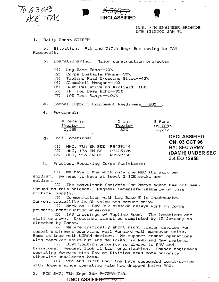 Document 41 f:/Week-24/BX000213/SITUATION REPORTS 7TH ENG BDE 22 DEC 90- 10 APR 91/daily sitrep 7th engineer bde:11089615143325