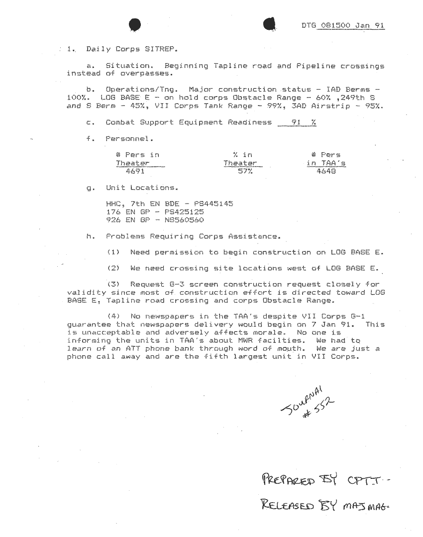 Document 41 f:/Week-24/BX000213/SITUATION REPORTS 7TH ENG BDE 22 DEC 90- 10 APR 91/daily sitrep 7th engineer bde:11089615143325