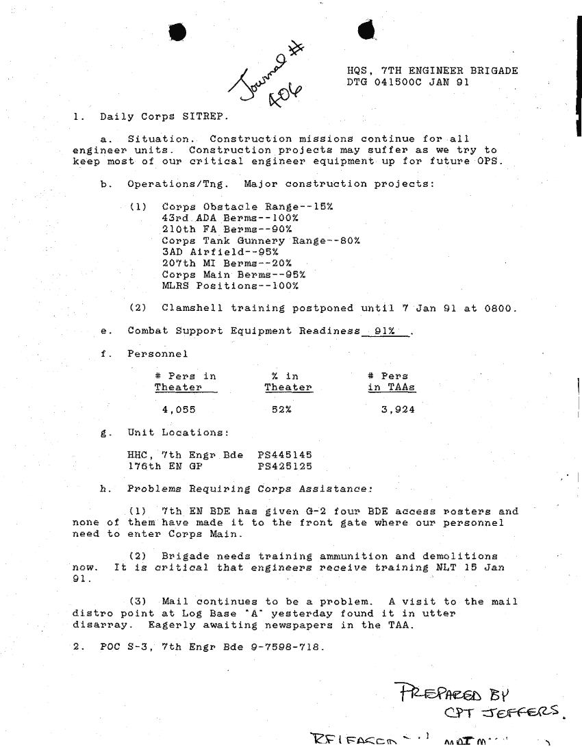 Document 41 f:/Week-24/BX000213/SITUATION REPORTS 7TH ENG BDE 22 DEC 90- 10 APR 91/daily sitrep 7th engineer bde:11089615143325