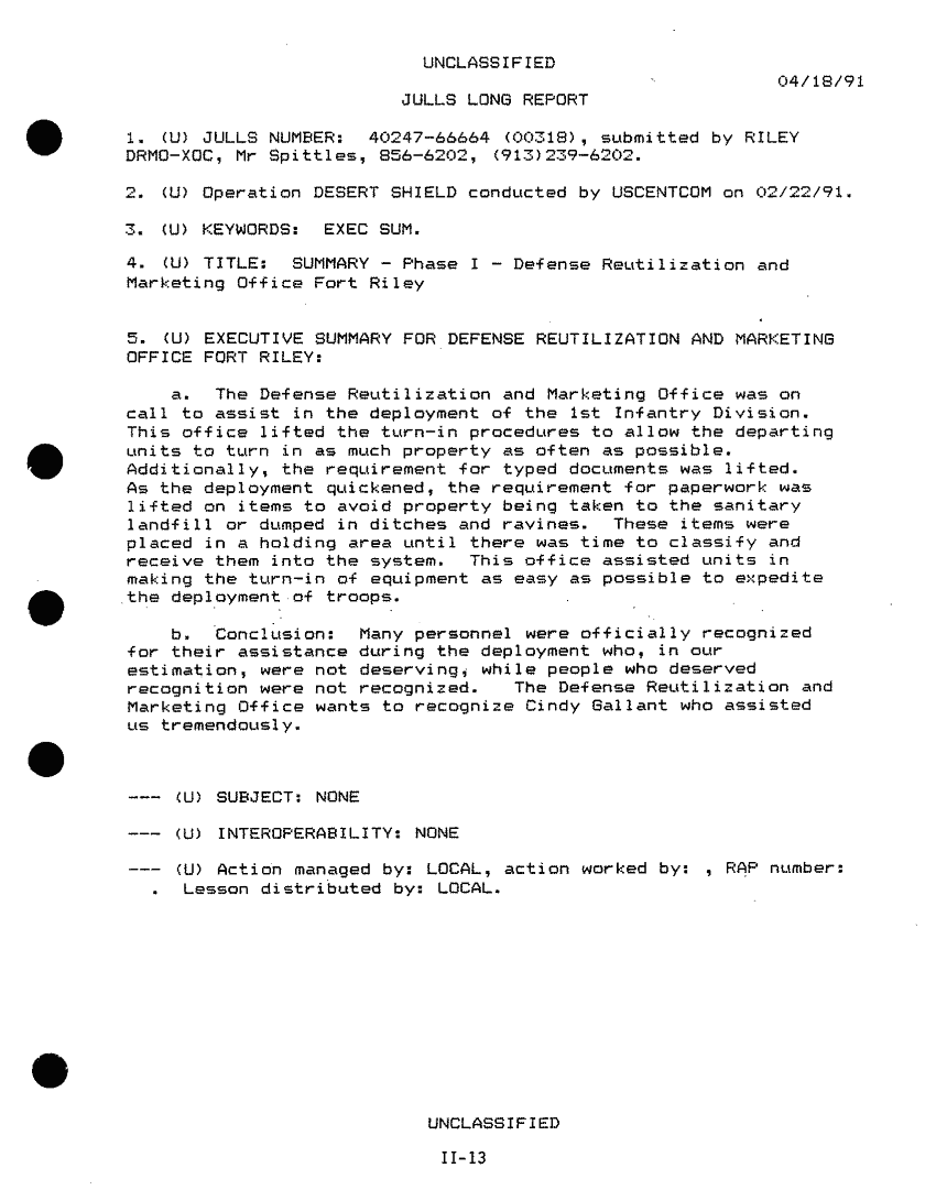 Document 517 f:/Week-26/BX001008/DESERT STORM AFTER ACTION REPORTS/special information for installation after actio:12179611150511
