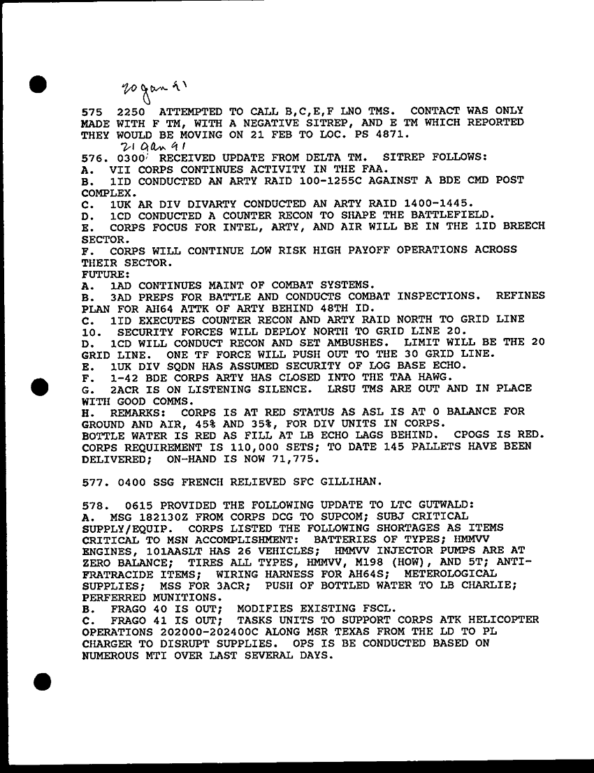 Document 57 f:/Week-30/BX000454/HISTORIANS BACKGROUND MATERIAL FILES - DAILY LOG SHEETS/daily staff journal and duty officers log:12179611150712