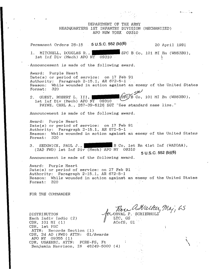 Document 78 f:/Week-26/BX001004/AWARD GUEST ROBERT L III-1/casualty report award of the purple heart:12179611151925