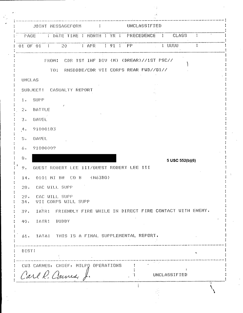 Document 78 f:/Week-26/BX001004/AWARD GUEST ROBERT L III-1/casualty report award of the purple heart:12179611151925