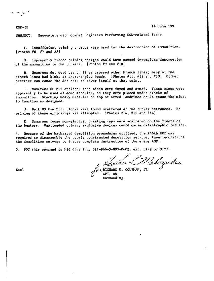 Subject = ENCOUNTERS WITH COMBAT ENGINEERS PERFORMING EOD