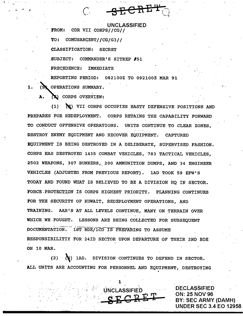 Subject = OPERATIONS SUMMARY CDR VII CORPS