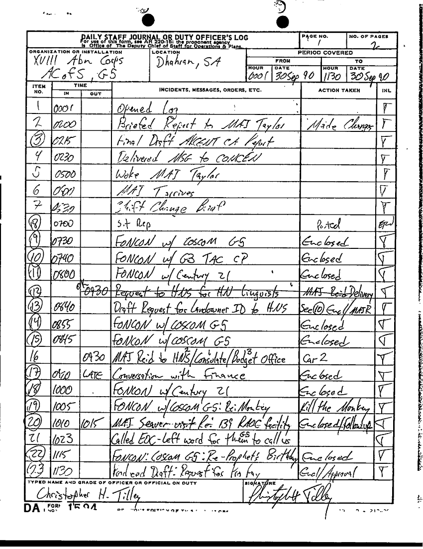 Document 25 f:/Week-13/BX000005/DUTY LOG G5 30 SEP 90/daily staff journal or duty officers log:12269616083825