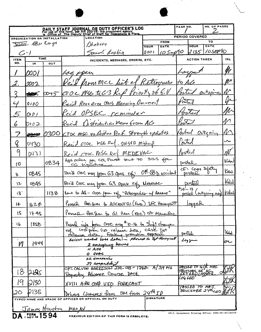 Document 110 f:/Week-15/BX000043/DUTY LOG G1 1-15 SEP 90/daily staff journal or duty officers log:12269616083010