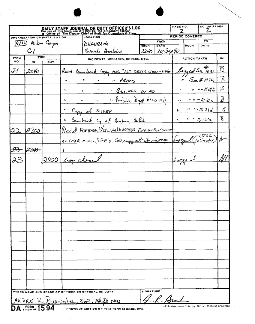 Document 110 f:/Week-15/BX000043/DUTY LOG G1 1-15 SEP 90/daily staff journal or duty officers log:12269616083010