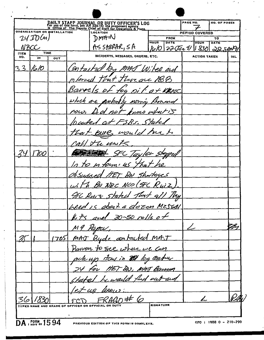 Document 85 f:/Week-22/BX001431/DAILY STAFF JOURNALS 24TH INF JAN MAR 91/daily staff journal:12269616085661