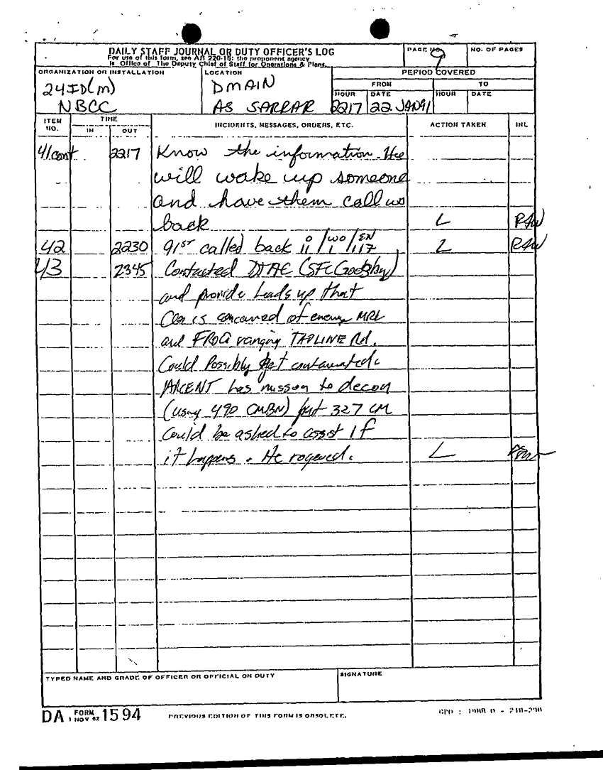 Document 85 f:/Week-22/BX001431/DAILY STAFF JOURNALS 24TH INF JAN MAR 91/daily staff journal:12269616085661