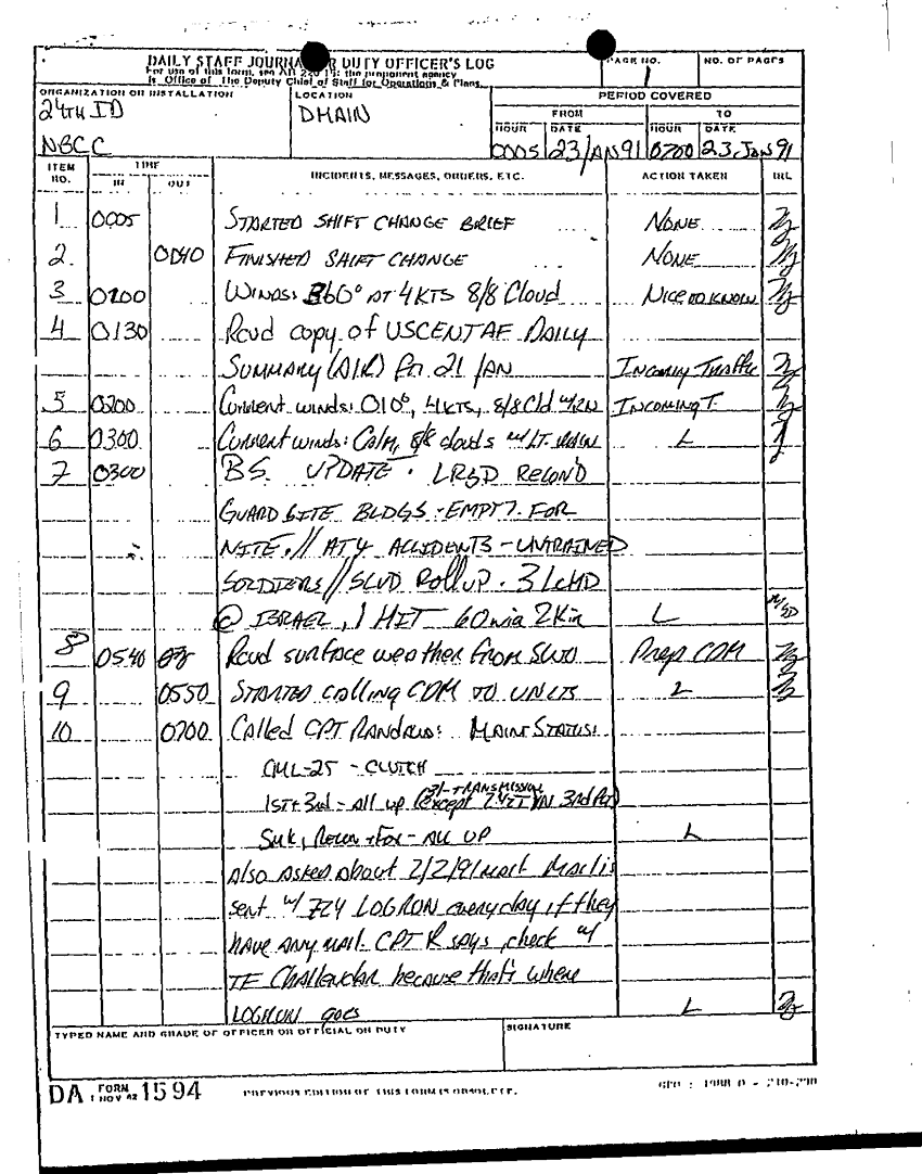 Document 85 f:/Week-22/BX001431/DAILY STAFF JOURNALS 24TH INF JAN MAR 91/daily staff journal:12269616085661