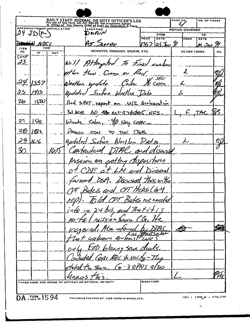Document 85 f:/Week-22/BX001431/DAILY STAFF JOURNALS 24TH INF JAN MAR 91/daily staff journal:12269616085661