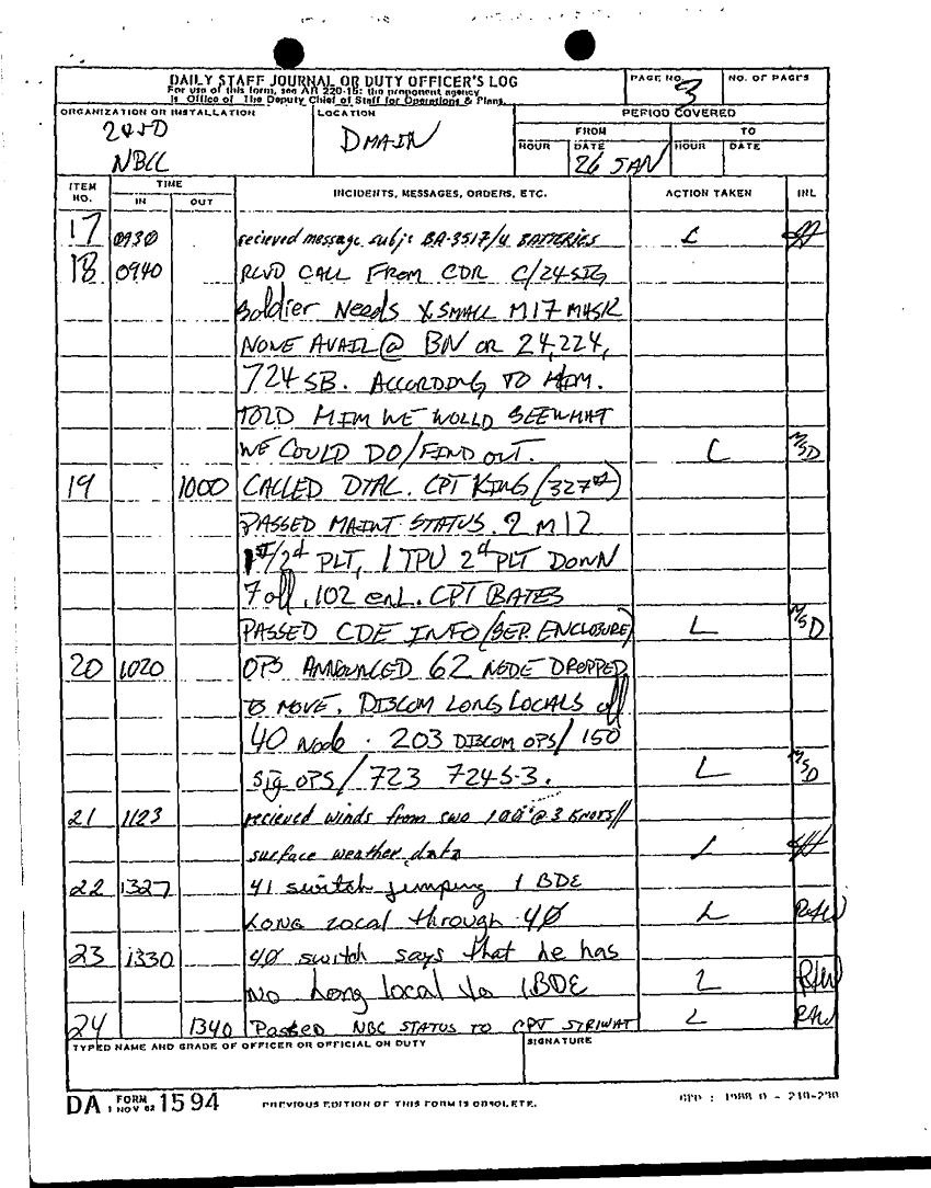 Document 85 f:/Week-22/BX001431/DAILY STAFF JOURNALS 24TH INF JAN MAR 91/daily staff journal:12269616085661