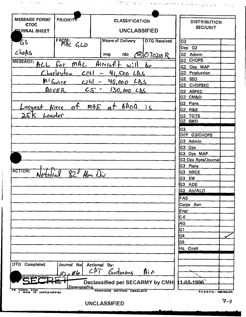 Folder Title = DUTY LOG EOC G3 6 7 AUG 90
