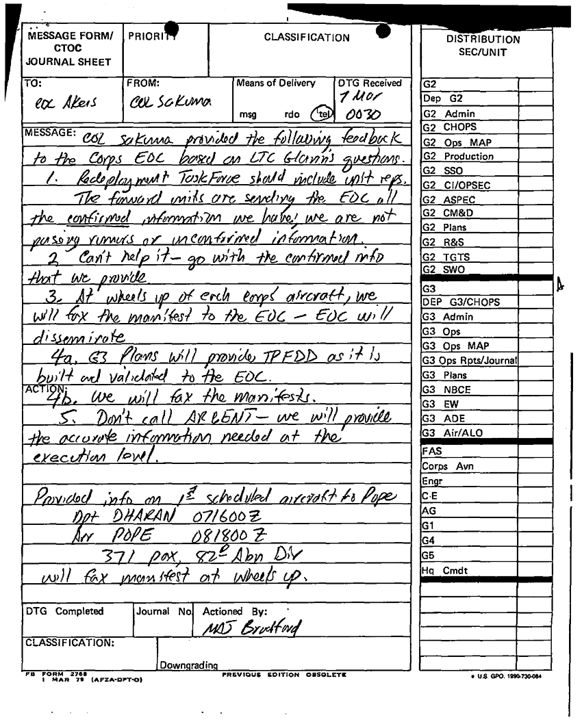Document 65 f:/Week-12/BX000024/DUTY LOG G3 TAC CP 6 MAR 91/daily staff journal or duty officers log:1226961608298