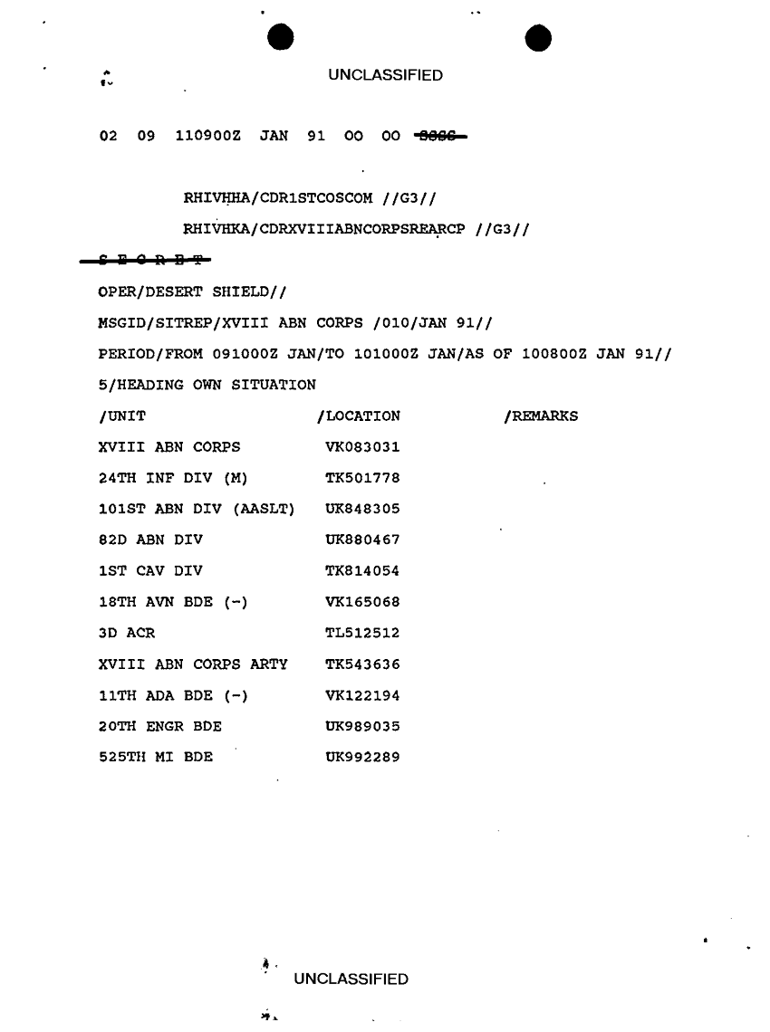 Document 9 f:/Week-10/BX000020/DUTY LOG G3 REAR XVIII ABC MAIN SITREPS JAN 91/message dated 11 jan 91:12269616085559
