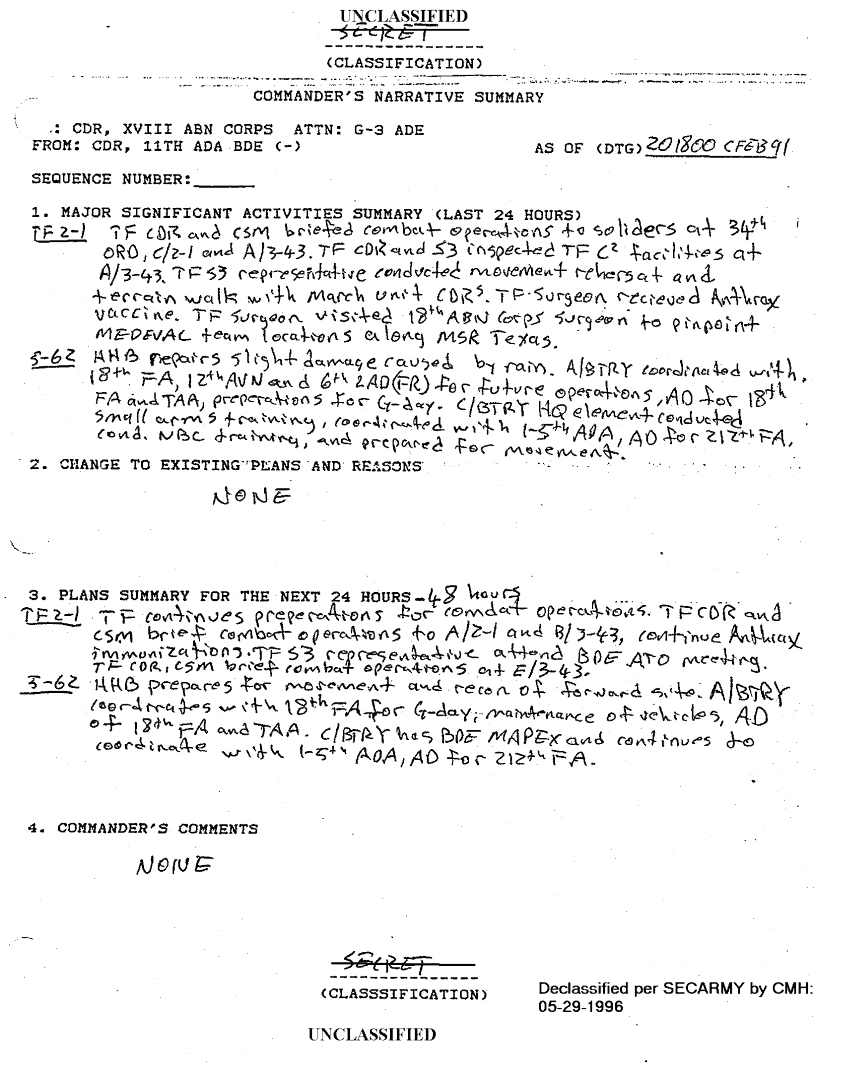 Document 36 f:/Week-18/BX000056/TASK FORCE 2-1 ADA SITREPS FEB 91/situation reports 11th ada bde feb 91:010297184310118
