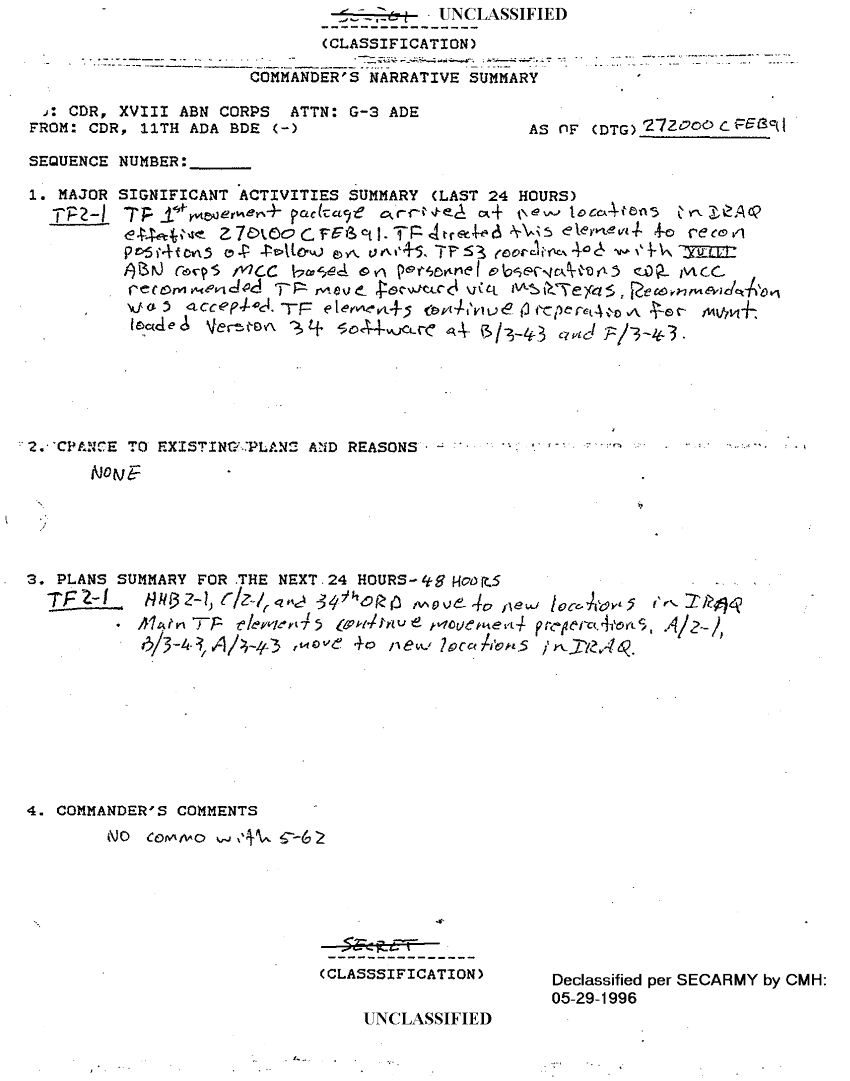 Document 36 f:/Week-18/BX000056/TASK FORCE 2-1 ADA SITREPS FEB 91/situation reports 11th ada bde feb 91:010297184310118