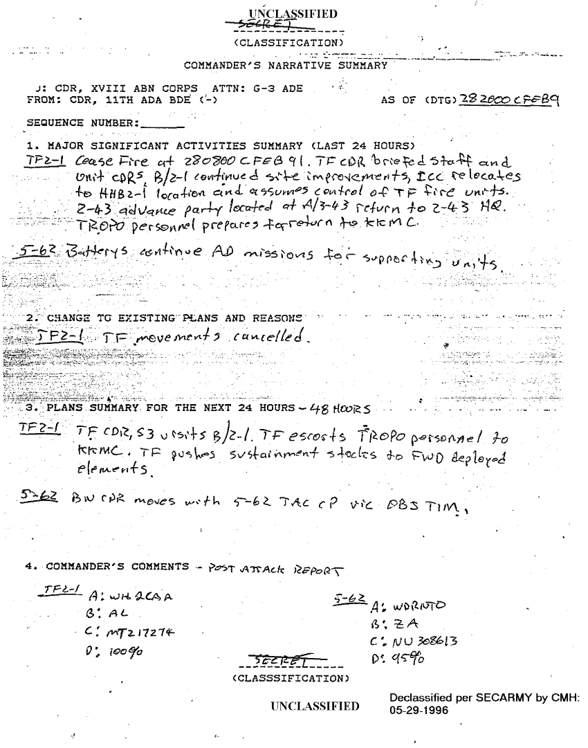 Document 36 f:/Week-18/BX000056/TASK FORCE 2-1 ADA SITREPS FEB 91/situation reports 11th ada bde feb 91:010297184310118