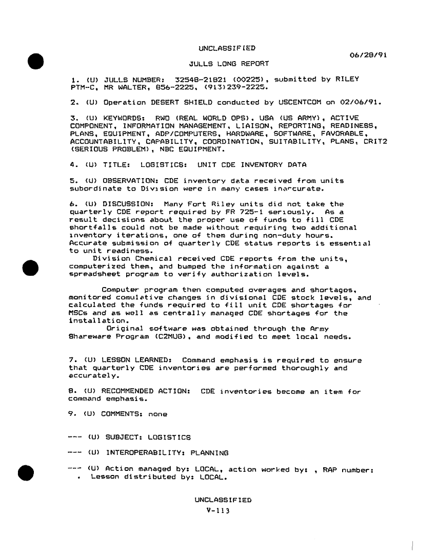 Document 14 f:/Week-27/BX001045/AFTER ACTION REPORTS PHASE I MOBILIZATION AND DEPLOYMENT/desert shield storm after action report phase 1:0102971552494