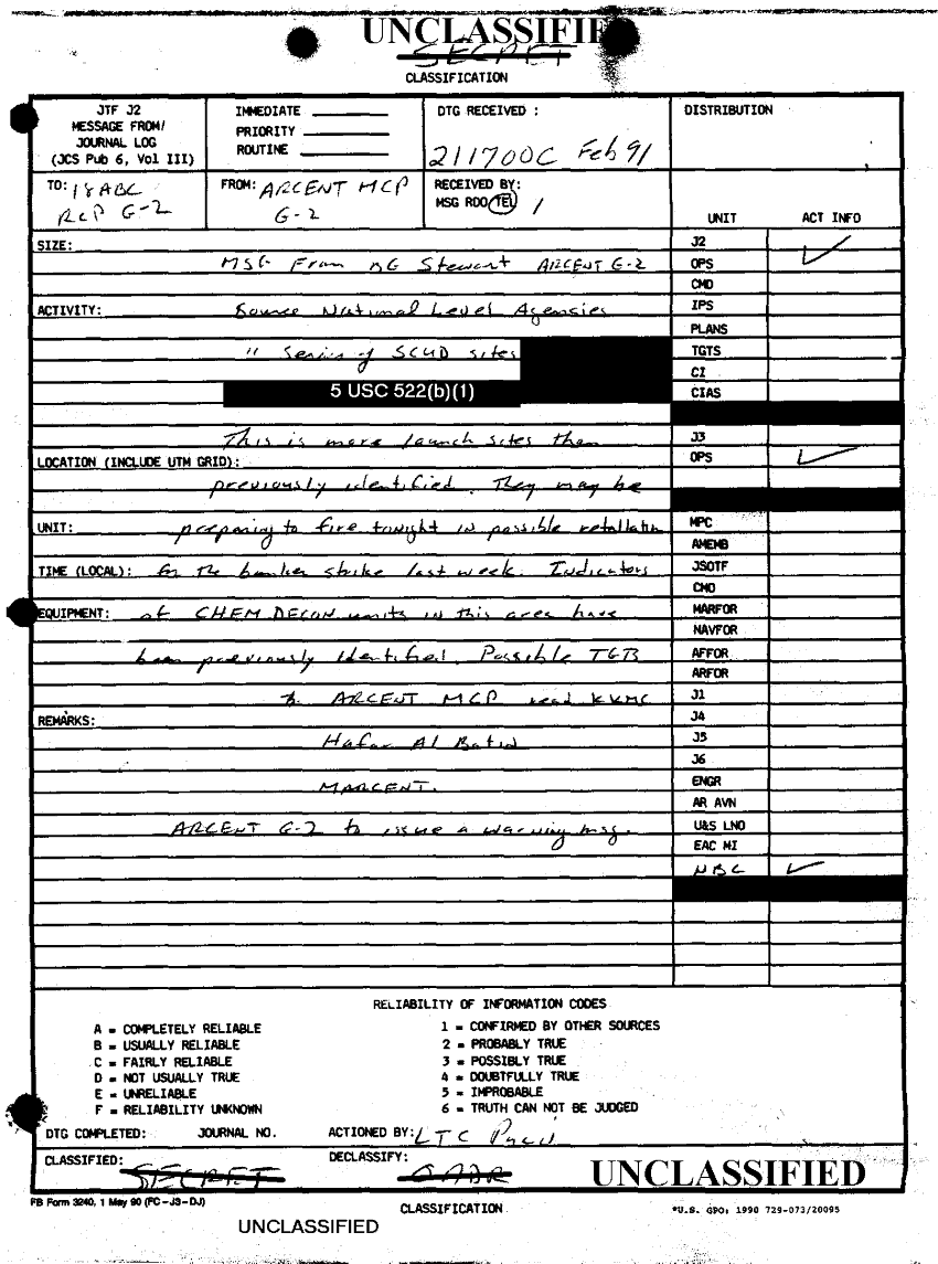 Document 6 f:/Week-09/BX000019/DUTY LOG G3 REAR 22 FEB 91/message form:01029715525616