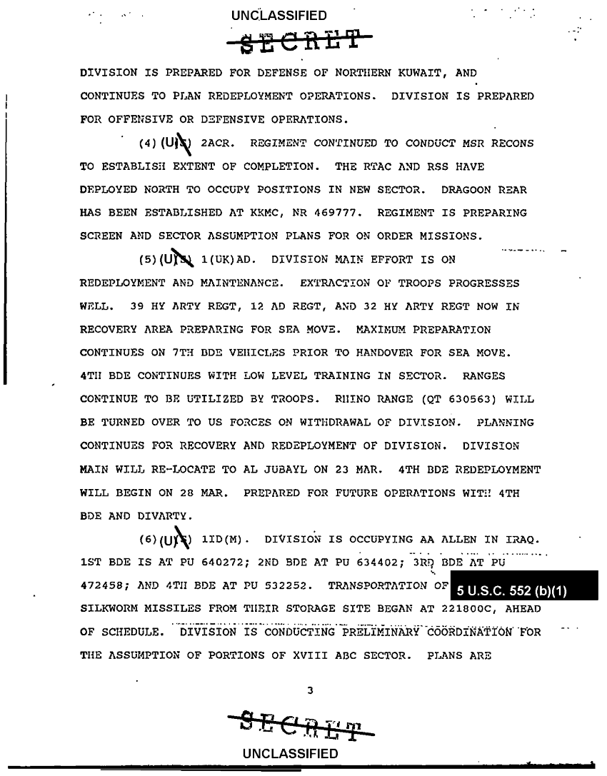 Document 11 f:/Week-42/BX000269/DAILY STAFF JOURNALS-23 MAR 91-2/operations summary 21 to 22 mar 91:01029718422429
