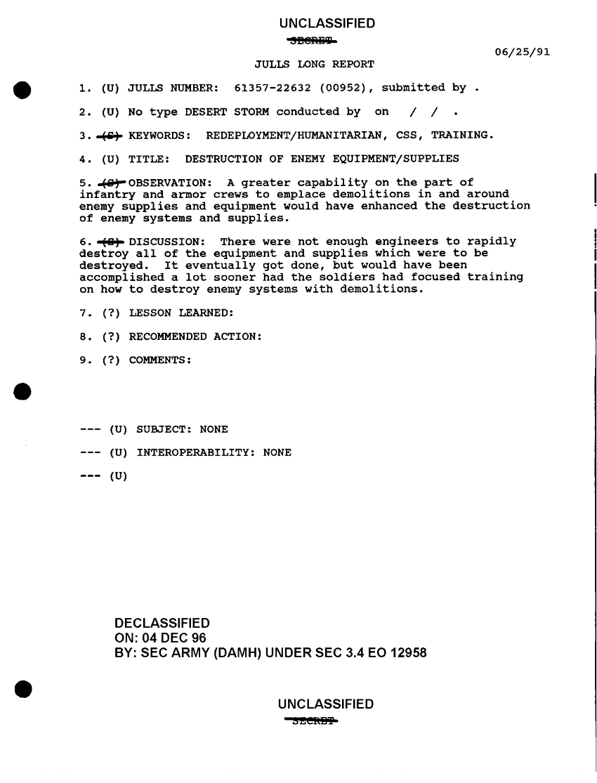 Document 1 f:/Week-42/BX000268/LESSONS LEARNED REDEPLYOMENT HUMANITARIAN OPS TAB C COMBAT SVC SUPPORT/julls long report:01029718424875
