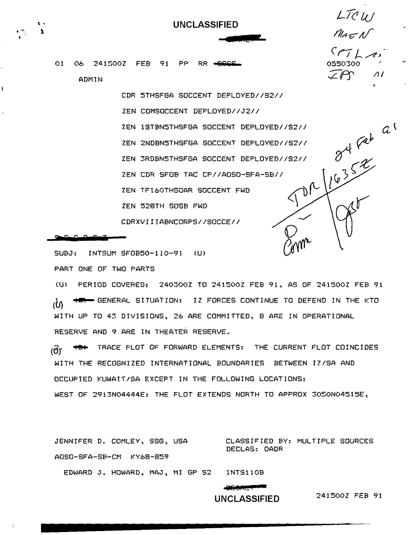 Document 8 f:/Week-46/BX004010/DESERT SHIELD AND DESERT STORM INTSUMS-SFOB 50-103-91 21 FEB-4 MAR 91/intsum sfob50 110 91:01029718425488