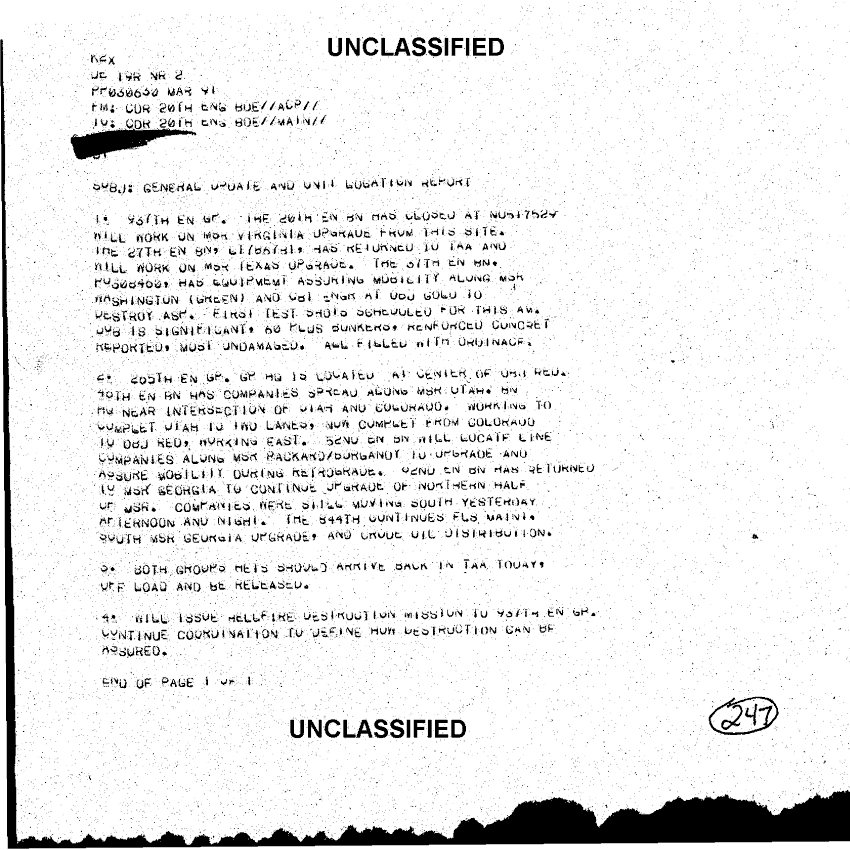 Document 1 f:/Week-26/BX001006/DUTY LOG 2-7 MAR 91-1/general update and unit location report 3 mar 91:0418971637465