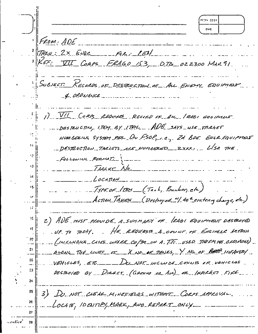 Document 3 f:/Week-32/BX001082/1ST ENGR BN 1ST ID-RECAPITULATION OF DESTROYED ENEMY EQUIPMENT/vii corps frago 153 22 mar 91:09229712012815
