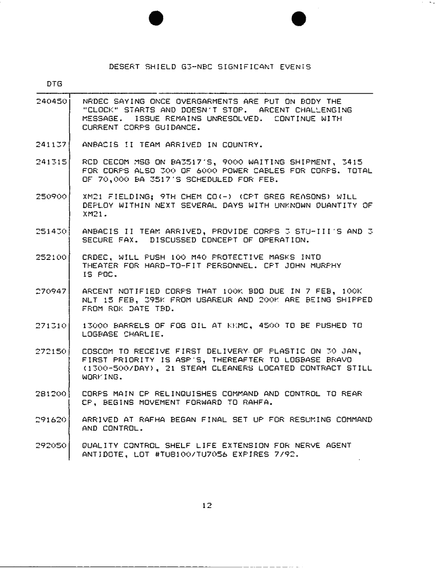 Subject = DESERT SHIELD G3 NBC SIGNIFICANT EVENTS