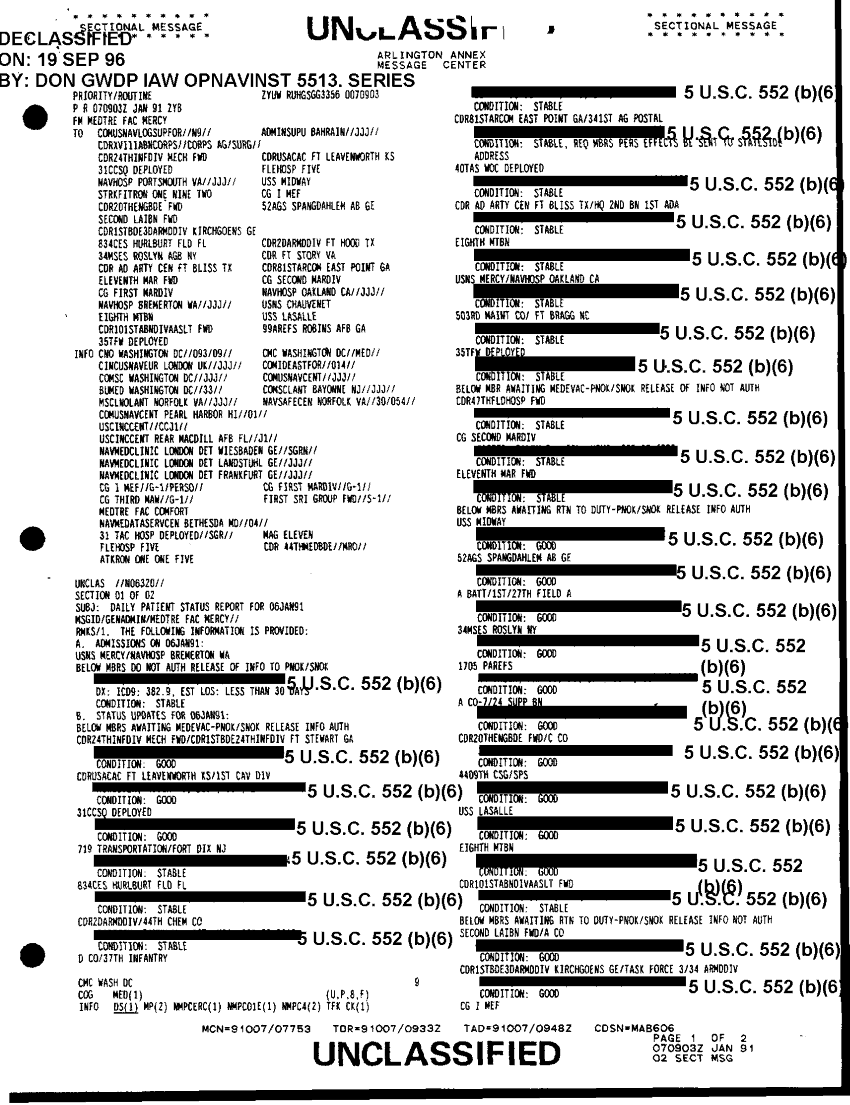 Document 1 f:/Week-37/BX303806/usns mercy folder various messages wdid binder 0008/daily patient status report 7jan91:100196141012