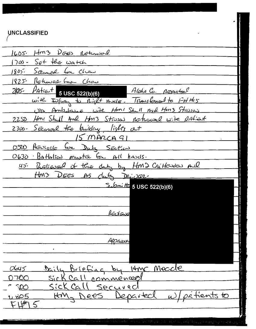 Document 49 f:/Week-37/BX303811/VARIOUS NAVAL MESSAGES FOLDER 4/various journal entries sick call 22 mar 91:0324971041562