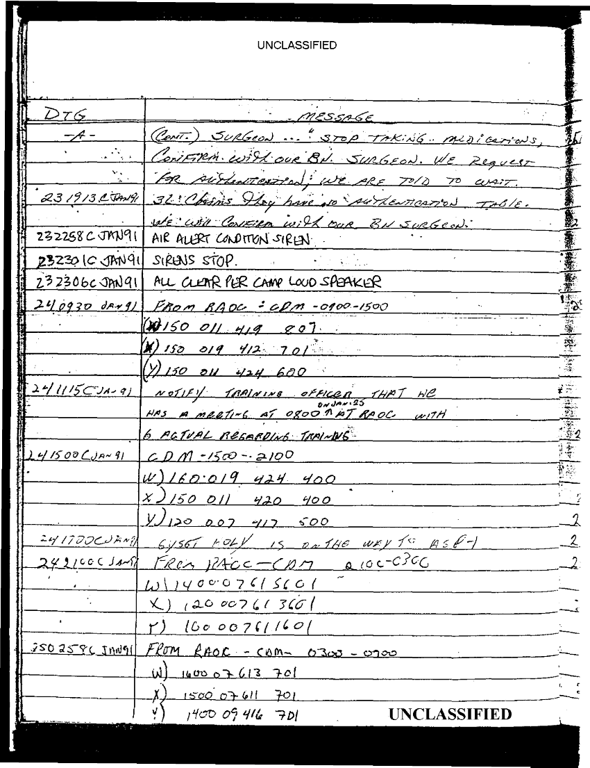Document 67 f:/Week-35/BX600013/COMMAND CHRONOLOGY 2ND BATTALION 24TH MARINES JAN - MAR 1991 2 OF 2/statement reference s 3 logs 9 jan 1991:0913961614048