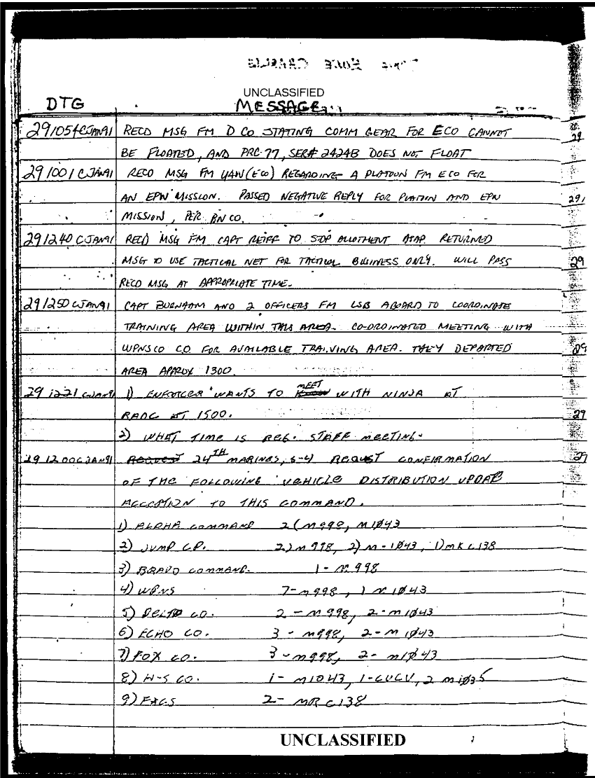 Document 67 f:/Week-35/BX600013/COMMAND CHRONOLOGY 2ND BATTALION 24TH MARINES JAN - MAR 1991 2 OF 2/statement reference s 3 logs 9 jan 1991:0913961614048