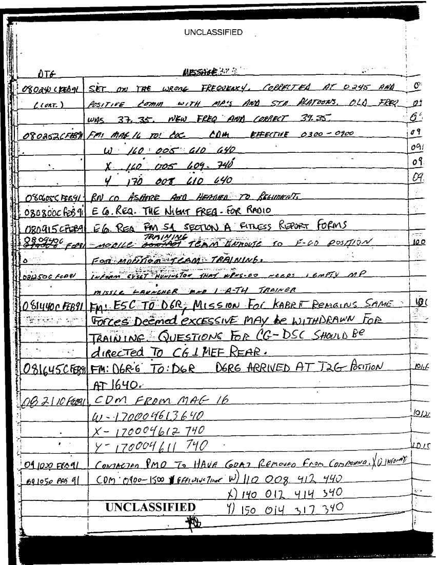 Document 67 f:/Week-35/BX600013/COMMAND CHRONOLOGY 2ND BATTALION 24TH MARINES JAN - MAR 1991 2 OF 2/statement reference s 3 logs 9 jan 1991:0913961614048