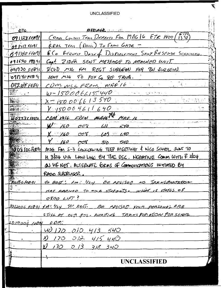 Document 67 f:/Week-35/BX600013/COMMAND CHRONOLOGY 2ND BATTALION 24TH MARINES JAN - MAR 1991 2 OF 2/statement reference s 3 logs 9 jan 1991:0913961614048