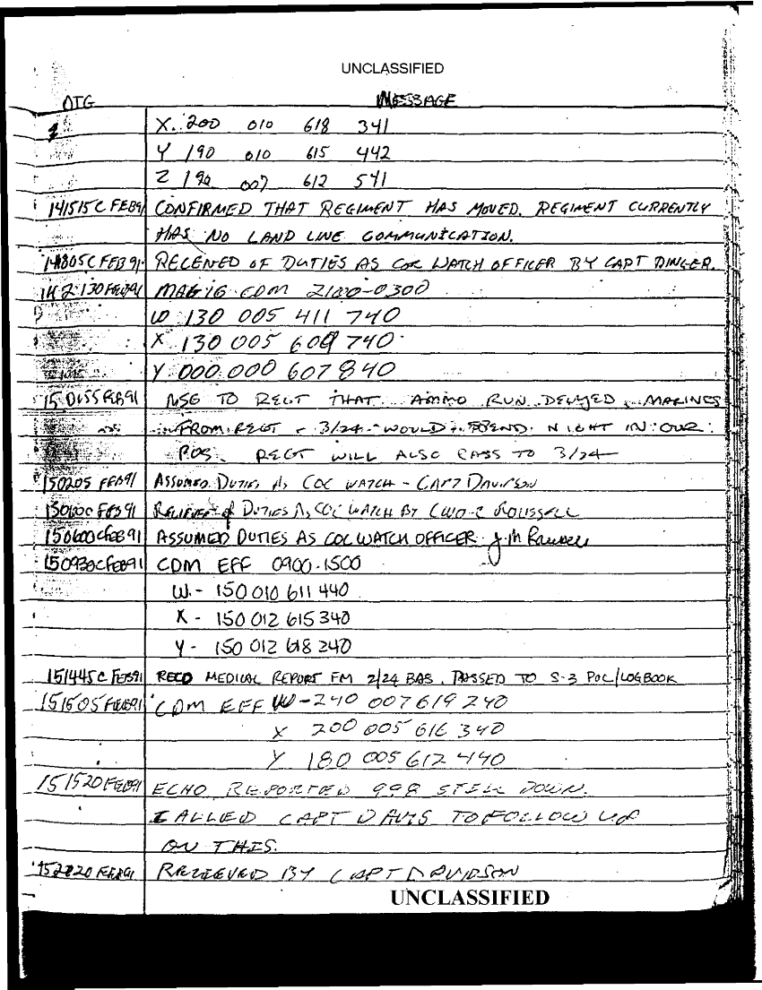 Document 67 f:/Week-35/BX600013/COMMAND CHRONOLOGY 2ND BATTALION 24TH MARINES JAN - MAR 1991 2 OF 2/statement reference s 3 logs 9 jan 1991:0913961614048